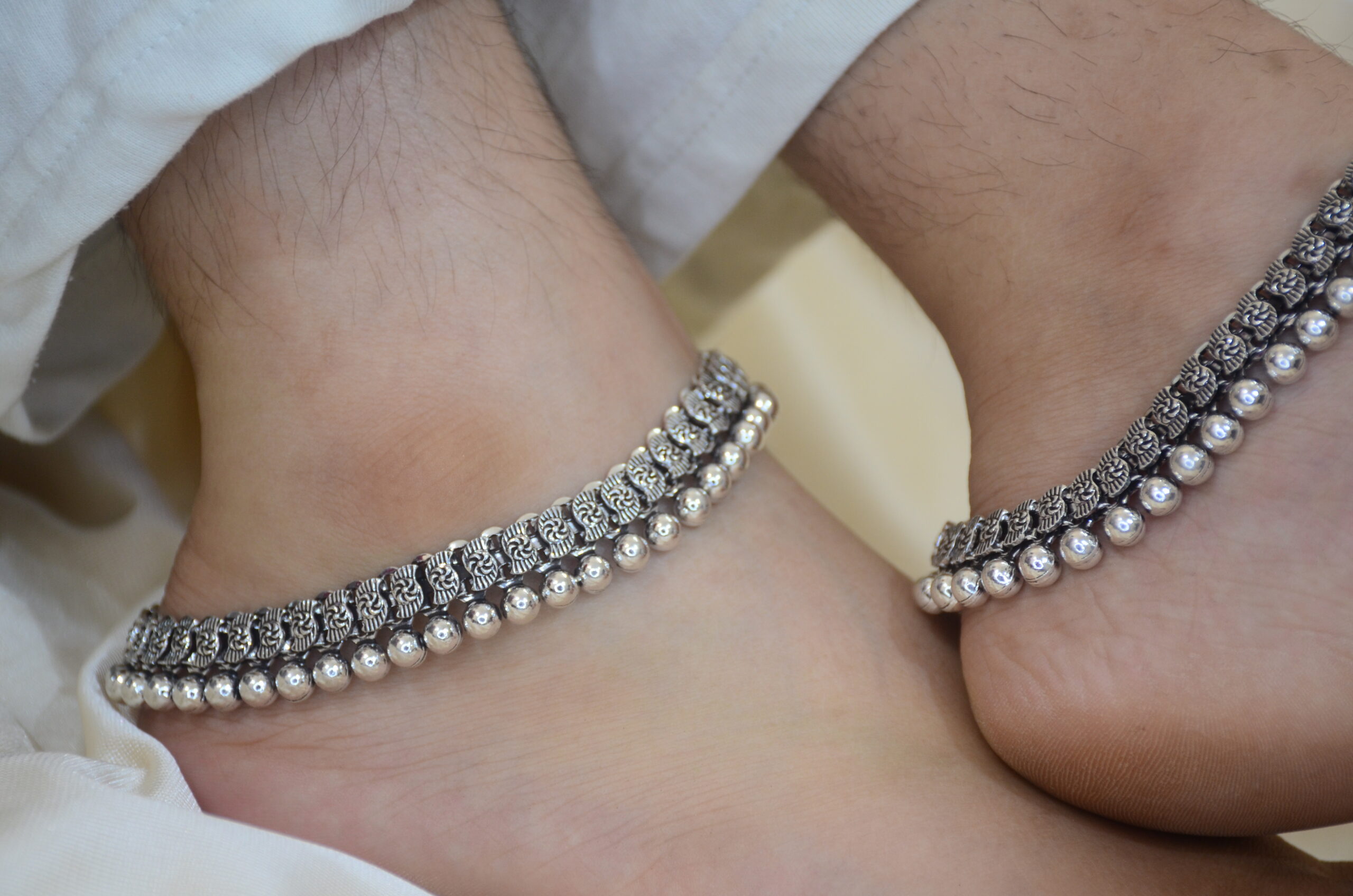 SJ Handcrafted 925 Oxidised Silver Anklet Pair for Women and Girls: A Gift for Special Occasions
