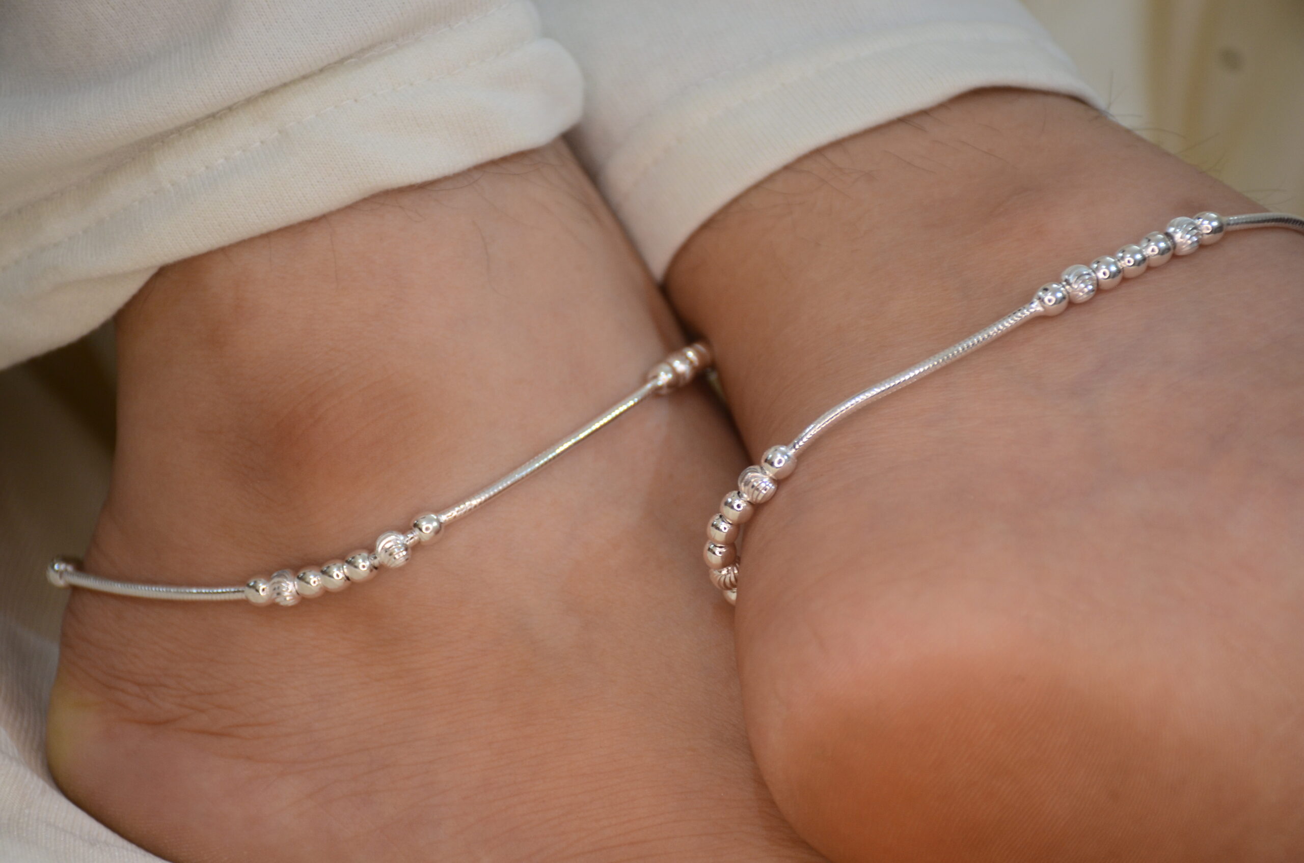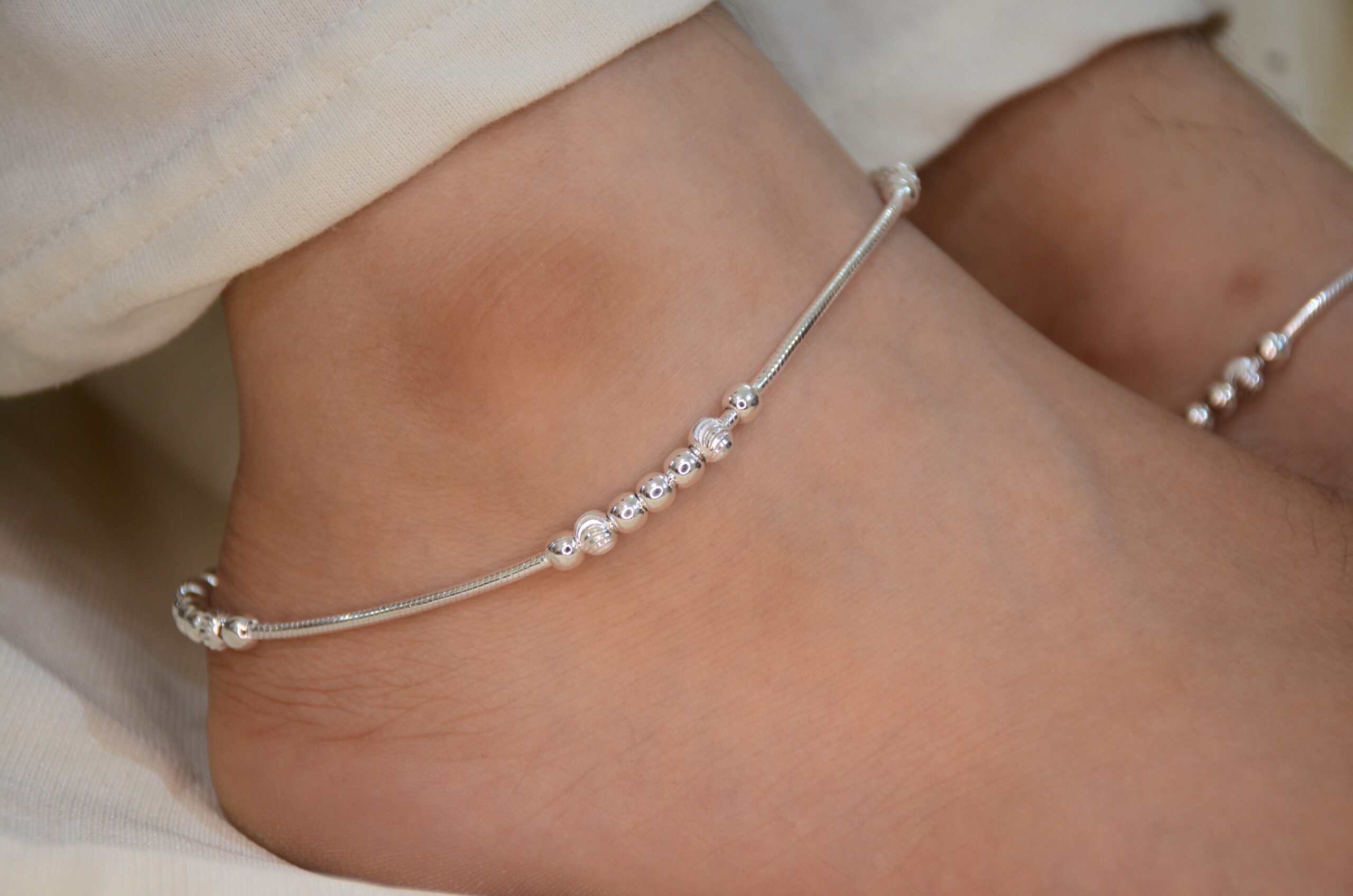 SJ Silver Chain Payal With Plain Ball Anklet for Ladies and Girls